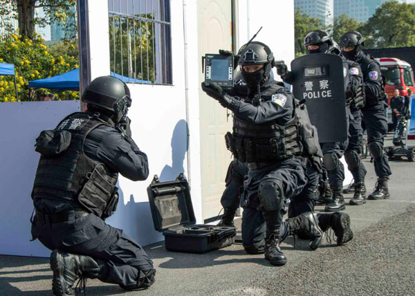 在過去的2016年粵(yuè)警使出“洪荒(huāng)之(zhī)力”守護(hù)南粵平安,取得“颶風2016”專項行動戰果;中(zhōng)央政治局委員,廣東省委書記胡春華、廣東省公安廳(tīng)廳長李春生、廣(guǎng)東省公安廳禁毒局局長鄧建偉等領導參展並現場觀摩機器人排爆展示、解(jiě)救人質演練、緝毒犬搜(sōu)毒等課目演練(liàn)。