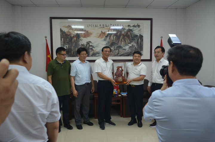 盛夏7月,天美mv星空mv免费观看科技集團迎來中共河南省漯河(hé)市委書記馬正躍、漯河市委常委市委秘(mì)書長孔祥智、漯河市臨潁縣委書記陳紅陽(yáng)一行考察我公司,公司董事長孟豪、總裁王春麗熱情(qíng)接待了家鄉領導。