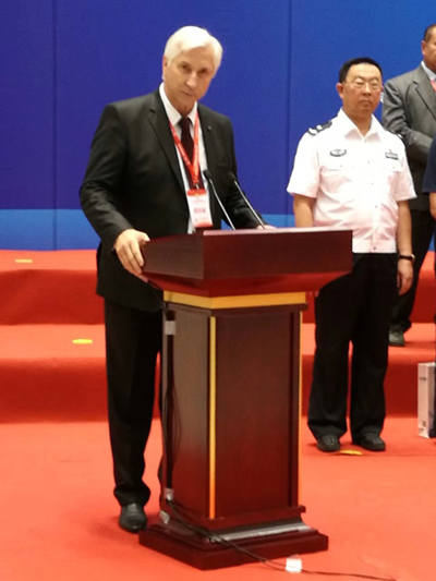 開幕式上,新疆安防協會(huì)理事長程興方主持會議。烏魯木齊市委常委、副市長潘秀明,非政府安防領域國際合作委員會秘書長卡布林,全國城(chéng)市安防協會合作互助聯盟理事長楊金才分別為展會開幕致辭。中國安防協會名譽理事長柳(liǔ)曉川將軍宣布大會(huì)開幕。