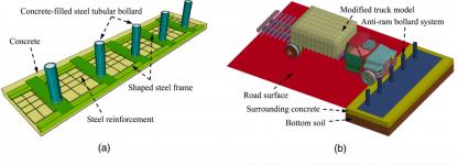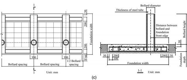 Research scholars in related fields certainly need to analyze and judge the rationality of this structure. Software such as LS-DYNA can analyze multi-rigid body dynamics problems. With this kind of software, technical support is obtained, and related companies develop products, and the safety performance of products can be ensured through experiments. The United States and the United Kingdom issued quality standards for car barriers in 2003 and 2007, respectively. If the simulation or test results can meet the relevant standards, they can be put into R&D and production. In the numerical model, the analysis results can be predicted by modeling calculations using the anti-collision column system, surrounding concrete, surrounding common foundation, road surface, and vehicle momentum.
